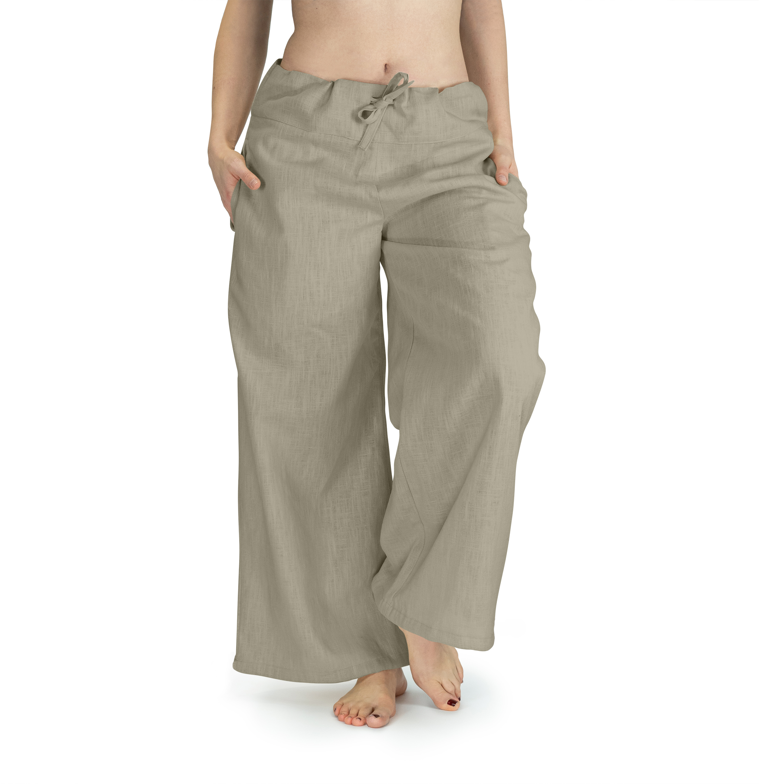 Die DELUXE-Leinenhose kombiniert Komfort und Stil zu einem sehr lockeren und angenehmen Tragegefühl mit maximaler Bewegungsfreiheit. Mit ihrer Extra-Überweite an den Hosenbeinen und verstärkten Nähten ist die DELUXE Leinenhose perfekt für Freizeit, Reisen, Yoga, Meditation, Tanz, Sport, Events und spezielle Anlässe. Vor allem an heißen Tagen bietet der weite Schnitt und die kühlenden Eigenschaften des Leinen ein Maximum an Tragekomfort. Der elegante alltagstaugliche Schnitt ist nicht nur ein Blickfang und Statement zugleich, sondern macht die Leinenhose auch zu einem Multitalent in Deinem Kleiderschrank. Der breite Hüftbund mit Tunnelzug und der Tunnelzug an den Hosenbeinen bieten zusätzliche Unterstützung und ermöglichen es, die Hose individuell an Ihre Bedürfnisse anzupassen.